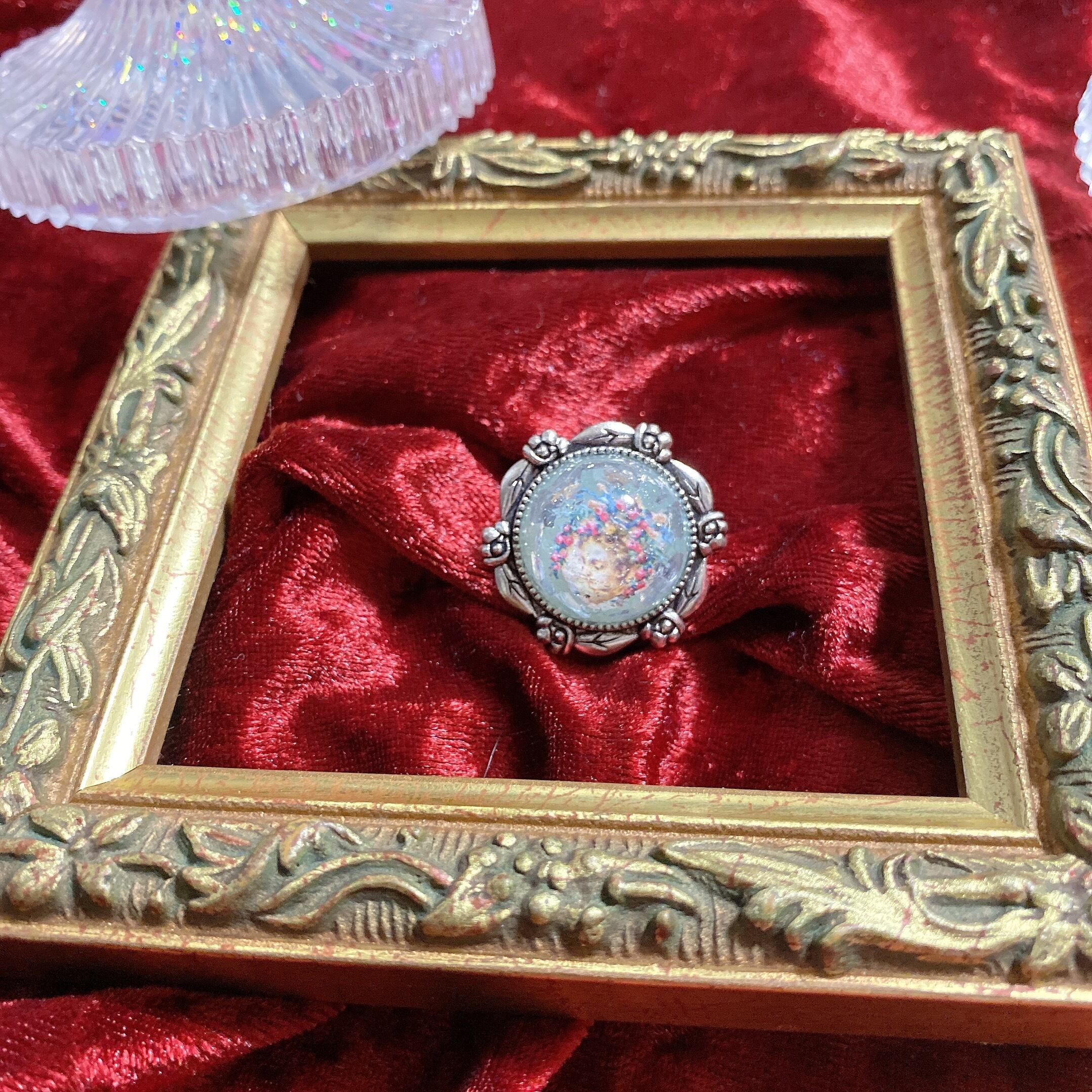 花を纏った少女ピクチャーを使用したフリーサイズリングです。
