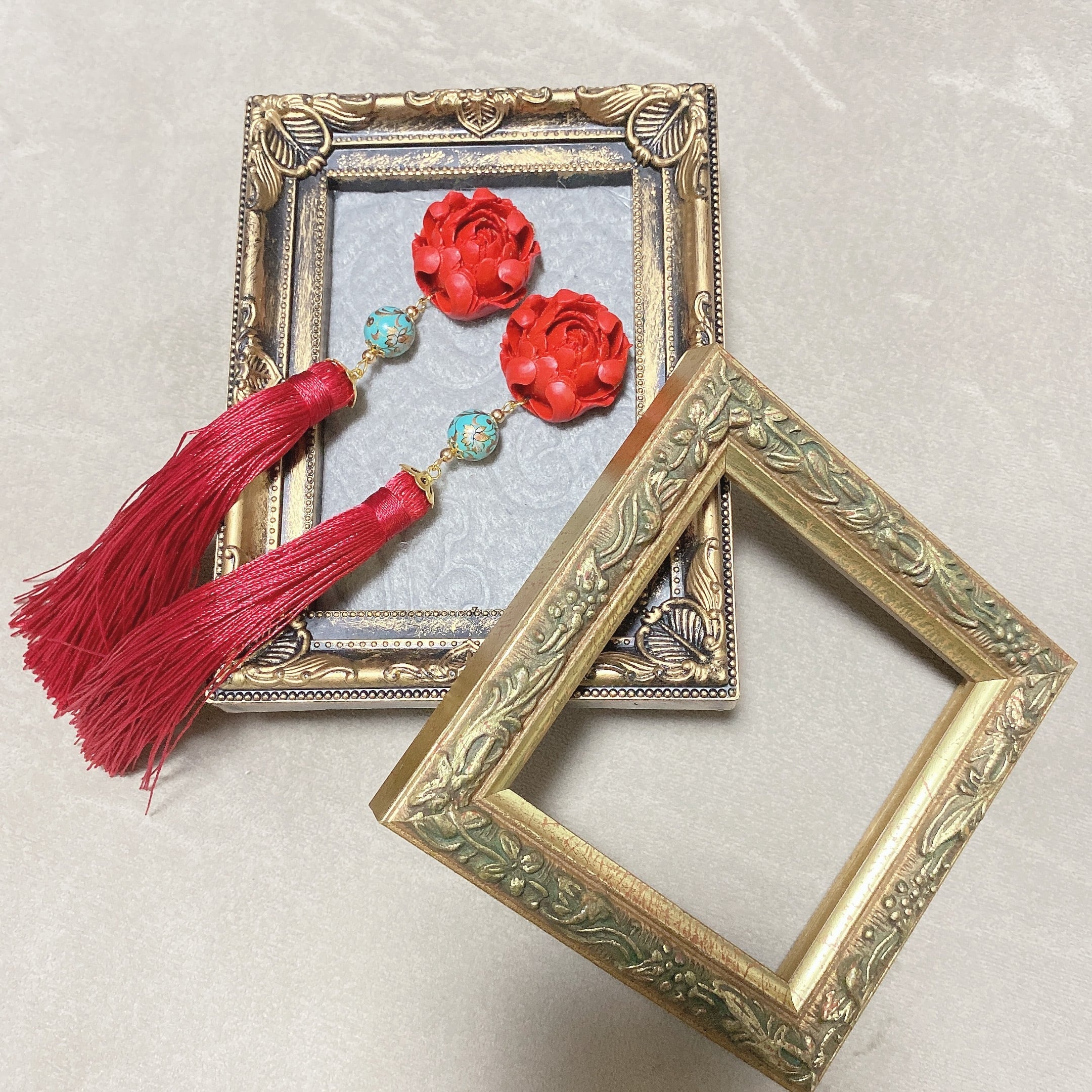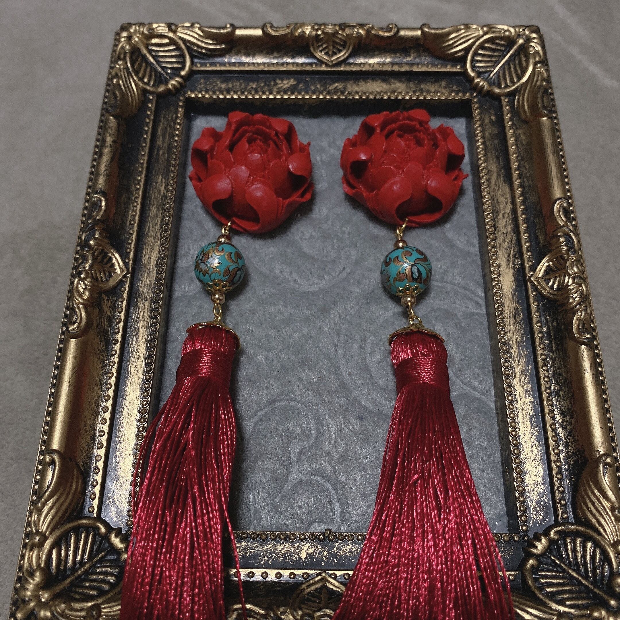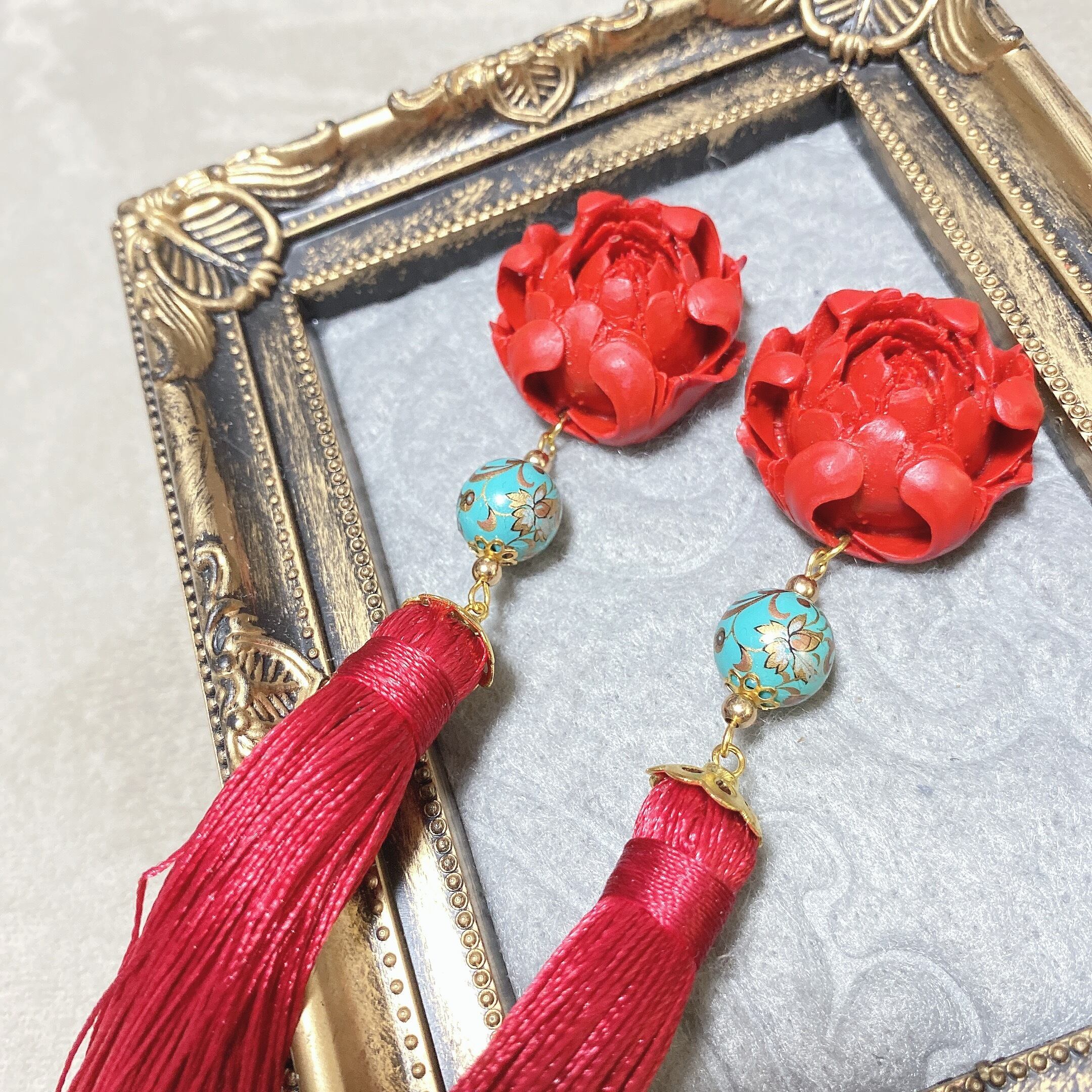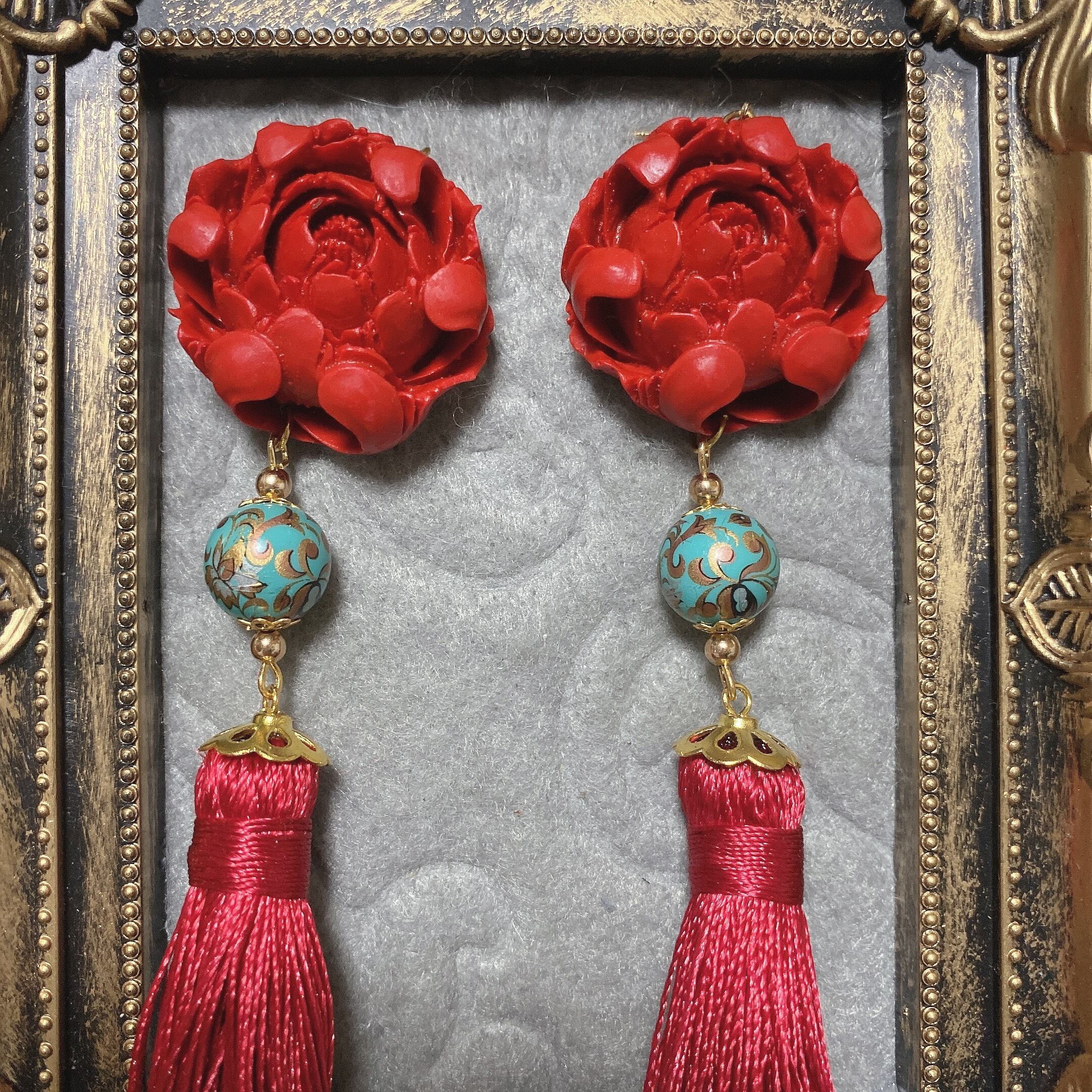【SALE】煉瓦ビッグフラワータッセルピアス