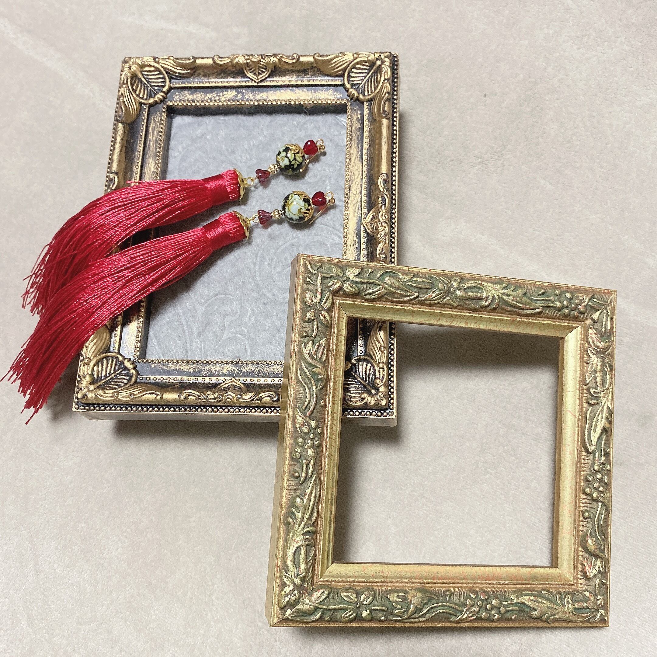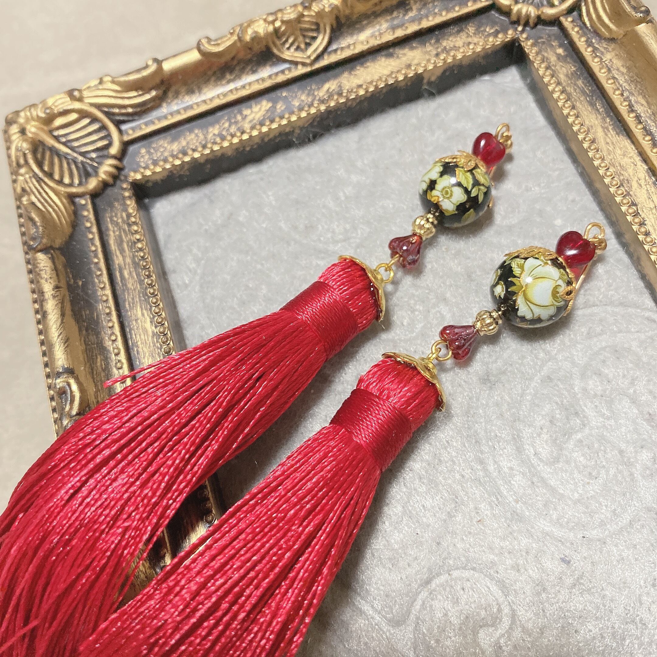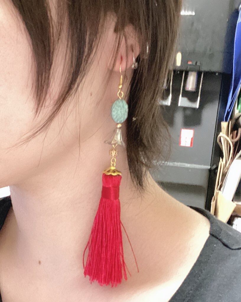 こちらは柄入りビーズが目立つよう、他のパーツは小さめのものを選びました。