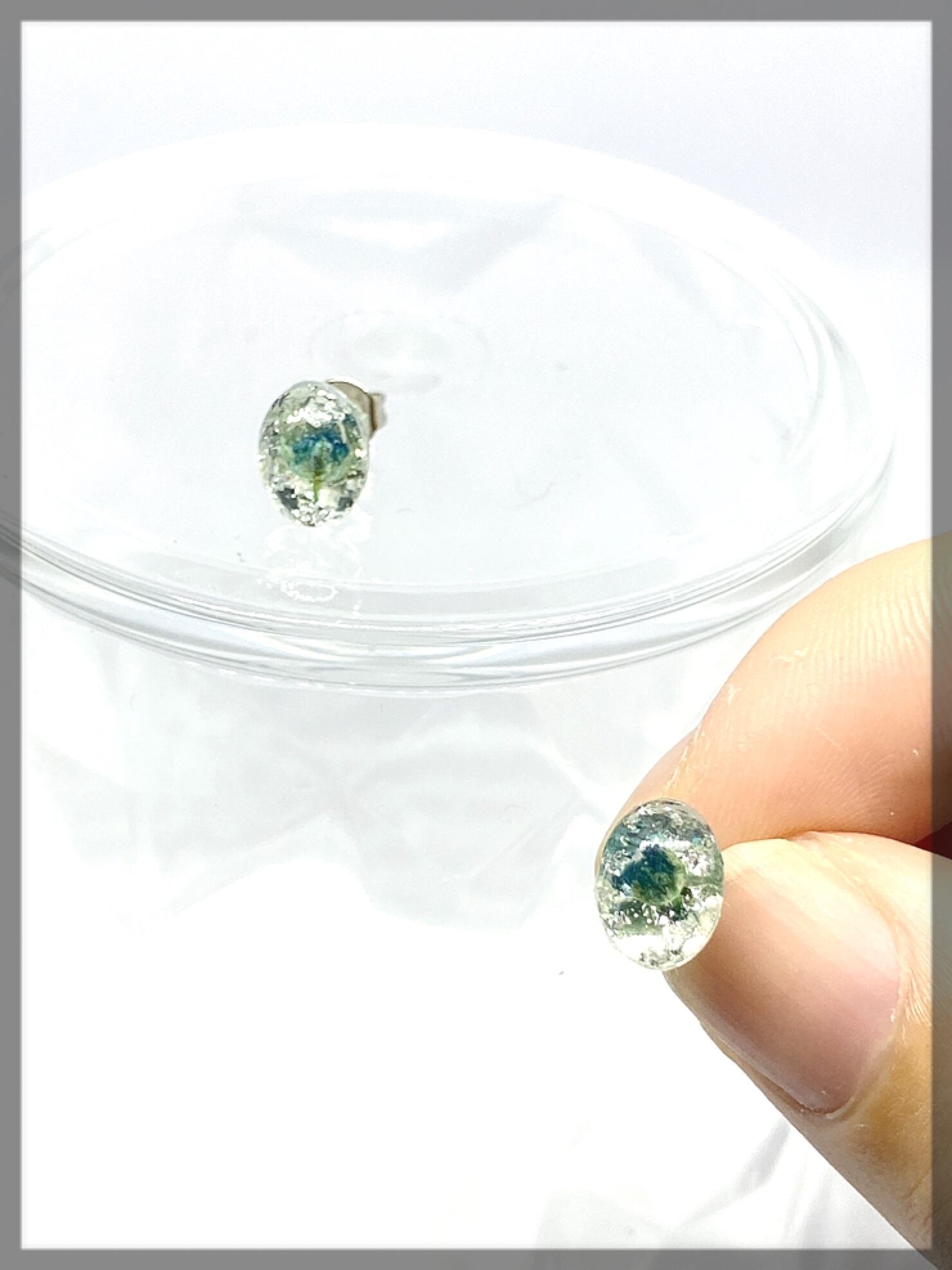 かすみ草の蕾を埋めた一粒ピアスになります。