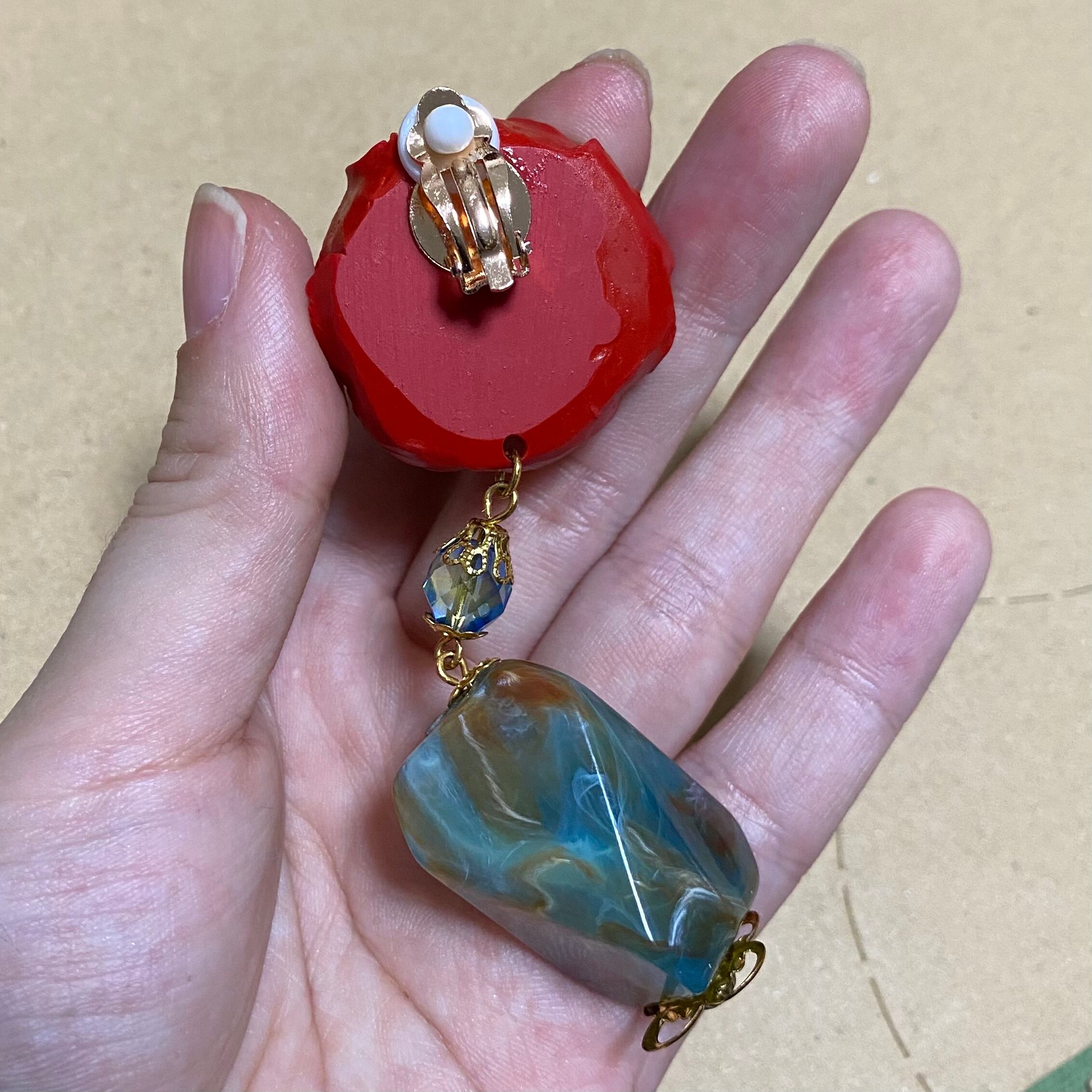 こちらパーツが煉瓦製で重いため、クリップイヤリングへ変更いたしました。