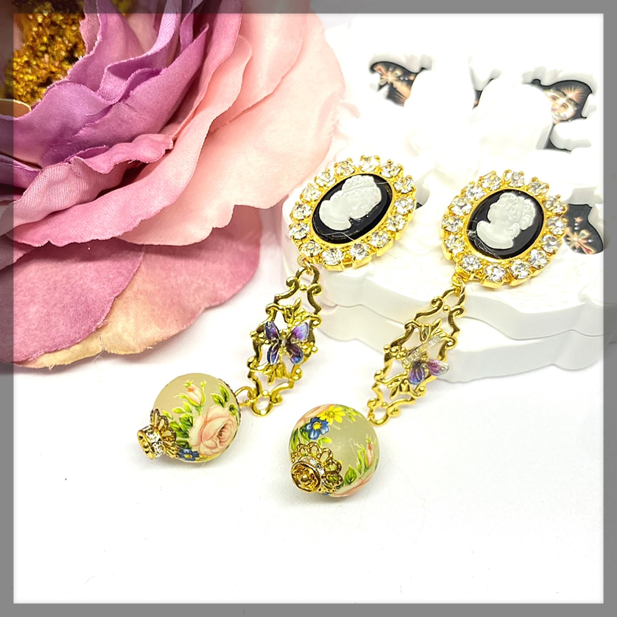 フリルたっぷりのお洋服にも、レザーのライダースにも、儚く、可愛く、時に強く、ご自身のファッションにアクセサリーをあわせてお使いくださいませ。