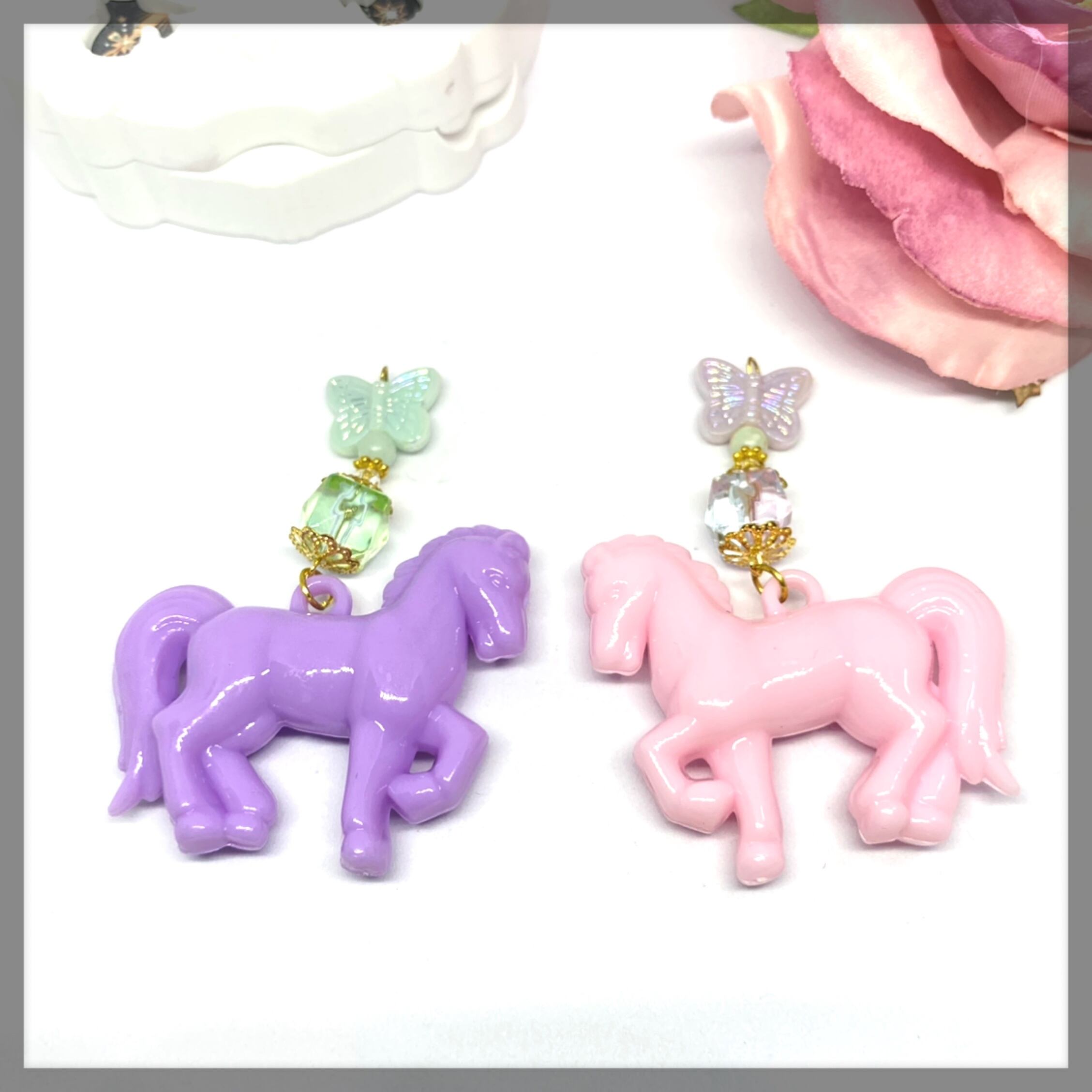 フリルたっぷりのお洋服にも、レザーのライダースにも、儚く、可愛く、時に強く、ご自身のファッションにアクセサリーをあわせてお使いくださいませ。